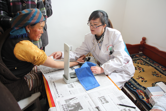 阜康醫(yī)院陳醫(yī)生 認真的給每位到場患者測量血壓