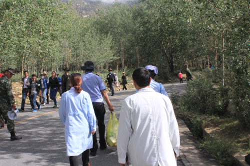 8月14日上午,阜康醫(yī)院組織起一支醫(yī)療小分隊(duì),攜帶各種藥物與電子血壓計(jì)等醫(yī)療器械,在醫(yī)務(wù)科副主任黃川川及歐醫(yī)生等人的帶領(lǐng)下,奔赴哲蚌寺,步行走過寺廟各大角落,為駐守哲蚌寺各條線路的廣大執(zhí)勤民警送醫(yī)送藥,送去關(guān)懷。