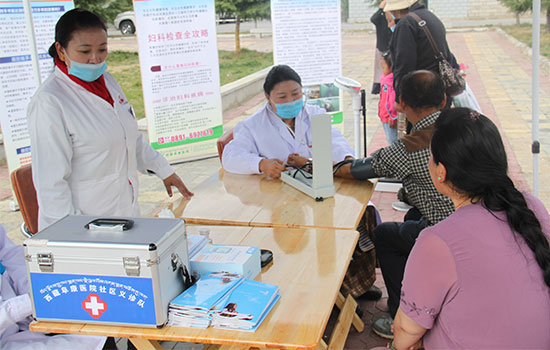由西藏阜康醫(yī)院卓瑪次仁醫(yī)生帶隊(duì)組成的三人義診小分隊(duì),在社區(qū)內(nèi)為群眾提供免費(fèi)義診服務(wù),義診現(xiàn)場(chǎng)前來(lái)就診的群眾絡(luò)繹不絕,測(cè)血壓、量體重、發(fā)放健康宣傳手冊(cè),義診工作有條不紊地開(kāi)展著。每一位前來(lái)問(wèn)診的群眾,醫(yī)務(wù)人員都耐心接待,為他們提供最合理的健康指導(dǎo),并詳細(xì)解答了他們的疑問(wèn),最后還不忘向他們普及醫(yī)療衛(wèi)生保健知識(shí)。