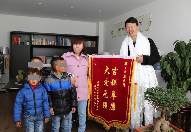 2017年3月10日,在藏歷新年之際,為了感謝王斌董事長(zhǎng)長(zhǎng)期關(guān)心拉薩市吉吉盲童幼兒園的發(fā)展所作出的貢獻(xiàn),幼兒園小朋友在吉拉園長(zhǎng)的帶領(lǐng)下,來到阜康醫(yī)院婦產(chǎn)兒童分院為王斌董事長(zhǎng)獻(xiàn)上哈達(dá),并送上錦旗“吉祥阜康大愛無疆”以表達(dá)對(duì)王斌董事長(zhǎng)大愛的感激之情。