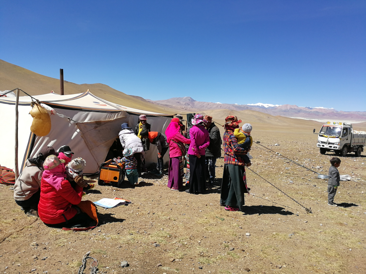 我仔細(xì)觀察四組前來(lái)的牧民,不管大人小孩,衣服都是干干凈凈的。那普居委會(huì)由李毛措主任團(tuán)隊(duì)駐村管理,那普居委會(huì)是本地的示范居委會(huì),因?yàn)檎芾淼卯?dāng),衛(wèi)生安全普及到位,居委會(huì)傳染病、包蟲病的感染人數(shù)很少。他告訴我,牧民們要穿戴干凈、講衛(wèi)生其實(shí)很難,他們要到很遠(yuǎn)的地方才有水源,而且天氣惡劣寒冷,洗衣服都是一件困難的事情。