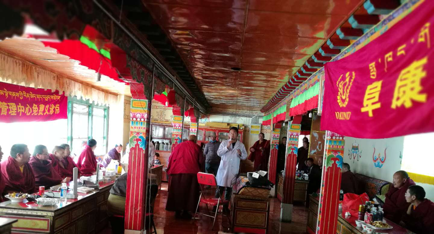 在寺廟佛學院院長占堆喇嘛的安排下,在一個寬敞的會議室里展開了義診活動,附近的老百姓聽說醫(yī)療義診隊的到來,也陸陸續(xù)續(xù)地從家里過來。