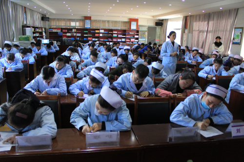 考場紀(jì)律異常嚴(yán)格,筆者也在阜康醫(yī)院婦產(chǎn)兒童分院參加了考試,員工分別以每行醫(yī)療、醫(yī)技、護理、行政交叉座次,醫(yī)療、醫(yī)技、護理、行政的考卷也各不相同。現(xiàn)場由敖德秀副院長、李君副院長、劉連福副院長監(jiān)考。考試題目并不難,只要認真背誦應(yīng)知應(yīng)會手冊都是能夠輕松應(yīng)答的。但是,好多同事并沒有認真學(xué)習(xí)應(yīng)知應(yīng)會手冊,考試現(xiàn)場抓頭發(fā)的抓頭發(fā),咬筆桿的咬筆桿,各個凝神屏息經(jīng)蹙眉頭,現(xiàn)場氣氛很是緊張。
