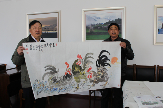 交流會上陳明文先生展示了自己的近期作品,韓書力主席贊其作品妙筆丹青、活靈活現(xiàn)、入木三分。沈開運(yùn)主席代表自治區(qū)文聯(lián)收錄了陳明文畫作《吉星高照》并贊其筆下公雞活靈活現(xiàn)、出神入化。