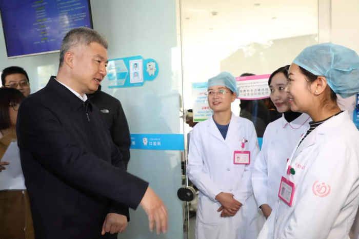 在婦產(chǎn)兒童分院口腔科,莊嚴(yán)書記見到了今年剛從內(nèi)地畢業(yè)回藏工作的大學(xué)生強(qiáng)巴卓嘎。強(qiáng)巴卓嘎告訴莊嚴(yán)書記,自己在內(nèi)地讀了5年口腔專業(yè),在阜康工作很開心,收入也不錯(cuò),現(xiàn)在有越來(lái)越多的同學(xué)愿意到民營(yíng)企業(yè)工作。莊嚴(yán)書記勉勵(lì)強(qiáng)巴卓嘎認(rèn)真學(xué)習(xí)臨床技術(shù),要不斷學(xué)習(xí)深造,提高自己專業(yè)技能,無(wú)論在公立醫(yī)院還是民營(yíng)醫(yī)院工作,都是在為百姓的健康服務(wù)。