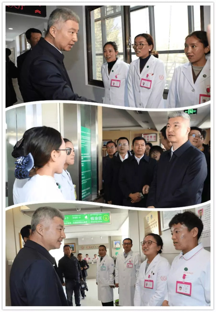 西藏阜康醫(yī)療股份有限公司黨委書記、董事長(zhǎng)王斌率全院院級(jí)領(lǐng)導(dǎo)陪同西藏自治區(qū)黨委副書記、政府常務(wù)副主席莊嚴(yán)一行進(jìn)行調(diào)研