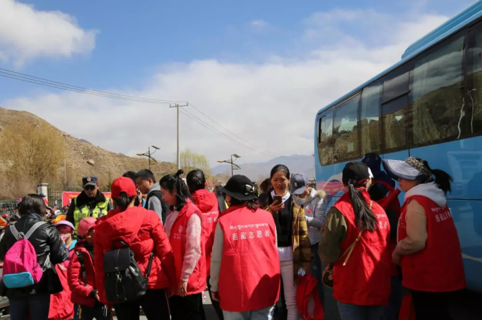 下午三點半,參加活動的人員準時在婦產(chǎn)兒童分院辦公區(qū)樓下集合,并坐上開往色拉寺的大巴。在車上,阜康天使基金會的工作人員為大家發(fā)放志愿者馬甲以及水和食物,同時提醒大家撿拾垃圾和爬山時的注意事項。有人提議進行才藝表演,于是一位同事的女兒用稚嫩的童聲唱了一首《喵喵喵》,小姑娘歌聲優(yōu)美、活潑可愛,同事們一路歡聲笑語,不知不覺中就到了位于拉薩市北郊的色拉寺。
