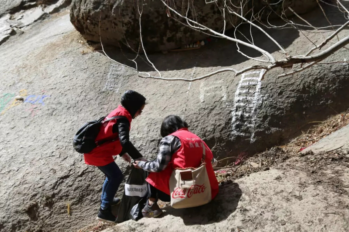 這時基金會的工作人員及時給大家發(fā)放了手套和垃圾袋。上山途中,同事們一邊享受著爬山帶來的樂趣,一邊把沿途的垃圾撿起放在事先準備好的垃圾袋中,并將可回收垃圾和不可回收垃圾進行分開收集。因為山路崎嶇,本次活動還準備了急救箱,以防在爬山過程中出現(xiàn)身體不適等意外情況。