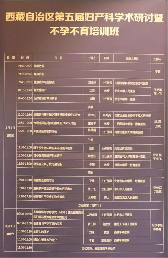 西藏自治區(qū)第五屆婦產(chǎn)科學術研討會暨不孕不育培訓班日程安排