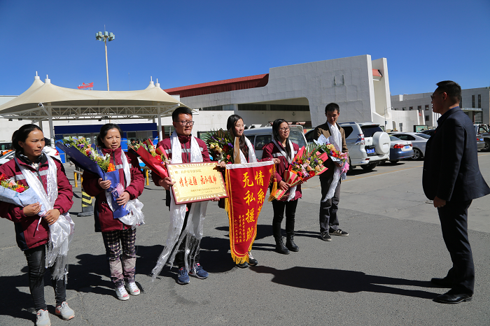 ? 值此秋高氣爽、碩果累累的豐收季節(jié),10月23日,阜康醫(yī)療隊(duì)圓滿完成阿里地區(qū)包蟲病義務(wù)篩查任務(wù),滿載榮譽(yù)而歸,隨著醫(yī)療隊(duì)全體成員從拉薩機(jī)場(chǎng)緩緩走出,陳彬副書記代表公司黨委對(duì)他們表示了熱烈的歡迎,并為每位隊(duì)員獻(xiàn)上鮮花和哈達(dá),歡迎他們回家。