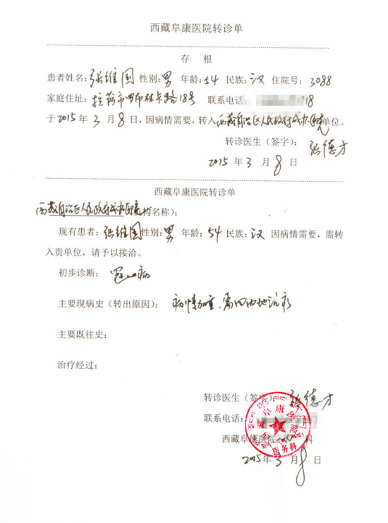 1、凡通過西藏阜康醫(yī)院轉(zhuǎn)診到西藏自治區(qū)人民政府成都辦事處醫(yī)院就診的患者,需前往阜康醫(yī)院領取“轉(zhuǎn)診單”,或在線下載,蓋阜康醫(yī)院公章后,持“轉(zhuǎn)診單”前往成辦醫(yī)院就診;