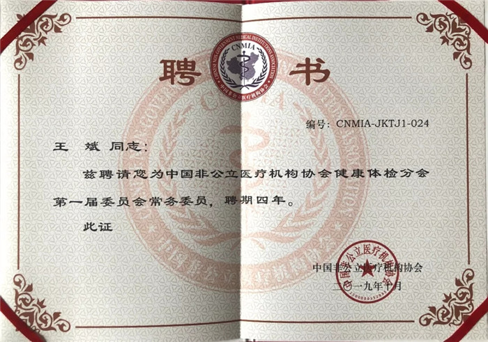 中國非公立醫(yī)療機構(gòu)協(xié)會健康體檢分會第一屆委員會常務(wù)委中國非公立醫(yī)療機構(gòu)
